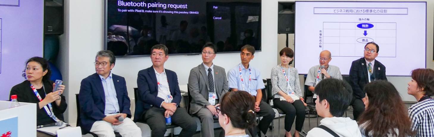 9月9日から二日間にわたって大阪万博に参加した。テーマは「フードロス×冷熱」である。現在の日本では未利用の食材(例えば、収穫された規格外の野菜や、市場で売れない小魚など)が300万トンを超えて存在し、これをNLG基地に併設されたプラントで急速冷凍して粉砕すると、水分や香り成分まで保存されたゲル状(完全には乾いていない)粉末ができる。このゲル粉末をつかって、例えば3Dプリンターで味と香りが保たれたスイーツや、すしネタなども作れるというのだ。この技術はムーンショットという内閣府のプロジェクトで進められており、私は国際標準化の専門家として参加している。大阪万博では、このプロジェクトのお披露目のトークショーがあったので、出演した(図1)。35度を超える猛暑の中を数十人の一般の方々が参加してくださり、楽しい時を過ごした。この技術は、農家や漁師、ゲル粉末の生産者、3Dプリンタ等の調理器メーカー、調理アプリのソフトウェア製作者、レシピを作るシェフなどの幅広い異業種間連携を可能とするプラットフォームとして活用することができ、食品産業をゲーム産業のような新たな経済圏に転換する可能性がある。そのためには互換性や品質を保証する規格が不可欠である。将来は私が参加しているISO TC 34 Food productsのもとで、新しいWorking Groupを作り、本研究テーマの成果を国際標準にできないかと思っている。
