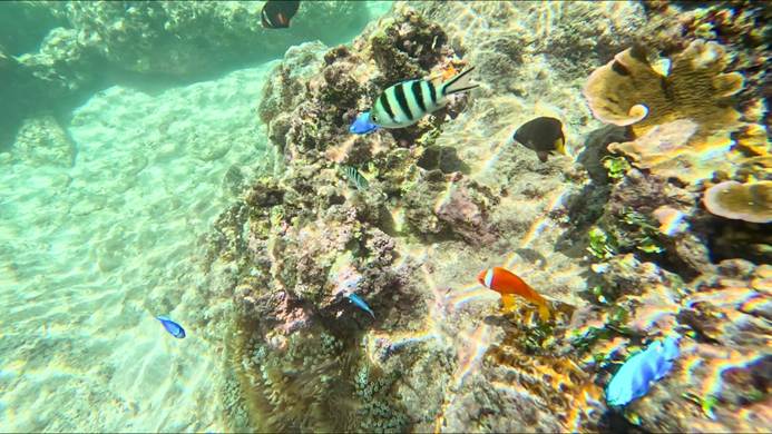 やはり今回初めてのシギラリゾートのビーチ。一種のプライベートビーチである。入場者が限られているので豊富なサンゴと豊富な魚種が確認された。 |