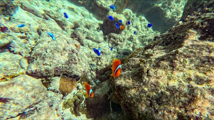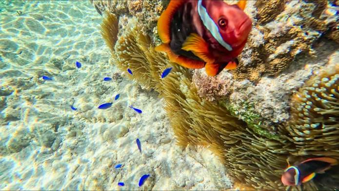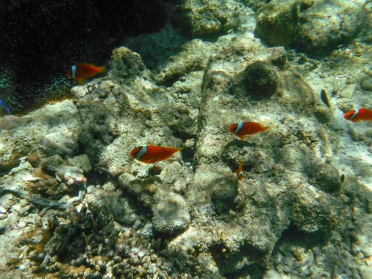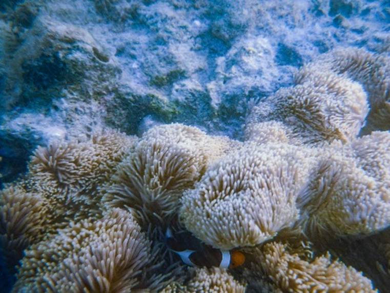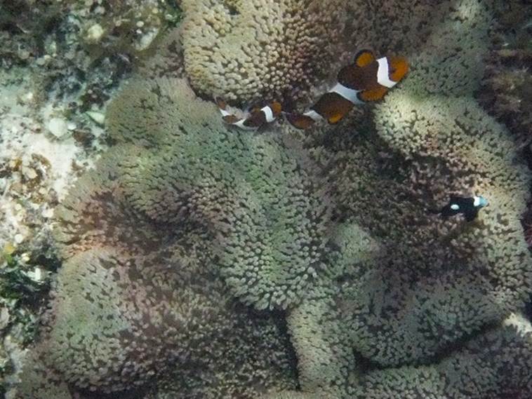 イソギンチャクが豊富にあるために,クマノミの生息数も他に類を見ないほど多い。 |