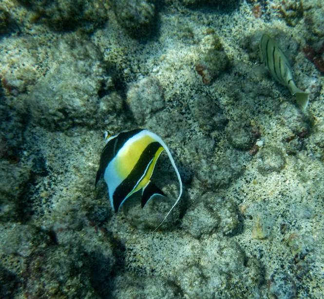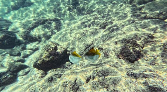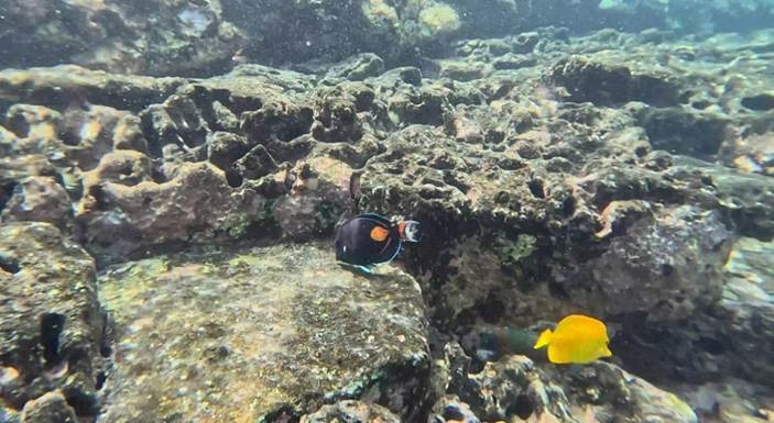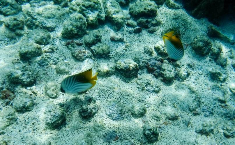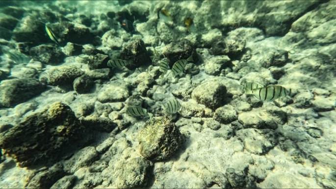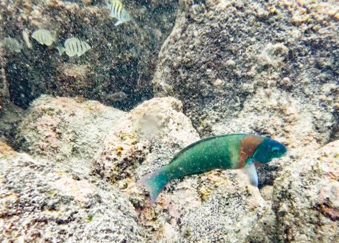 カハルアビーチパークはサンゴの保護が徹底しており,水中で立ち上がることを禁じている。そのおかげでハワイ島のなかではツーステップと同様に良い状態が保たれ,魚種も豊富であった。群れが多いのが特徴である。 l 動画1 l 動画2