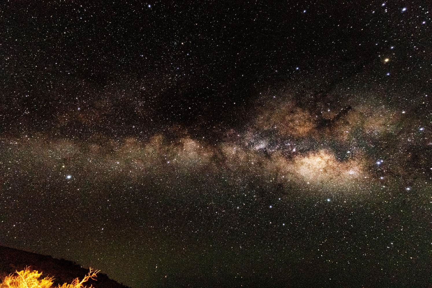 オニズカビジターズセンタの空の暗さは健在。2分間の露出にも悠々と耐えられる。日本を含む天体観測所がさらにここから登ったマウナケア山の山頂にあるためか,光害は極力抑えられている。駐車場への入出でもヘッドライトをつけないという配慮が求められる(観光客はしばしばこれを無視して非難を受ける)。