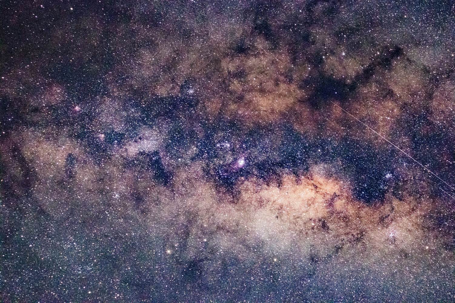 さそり座(右端)から白鳥座付近(左端)への銀河(Canon EOS M100,22mm,f2,30秒,ISO 800)