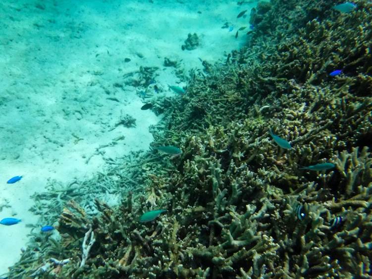 ツーステップは3か所の観察エリアがあるが,一番右はサンゴの保護が徹底している。エントリーすることもエクジットすることも許されていない。もちろん足で立ち上がることもできない。魚種は相変わらず豊富である。しかし,地元の環境保護団体とみられる方と話したところ,やはり観光客の侵入によりサンゴはほぼ死滅しているとのことだった。昔は驚くほどのサンゴが生息していたのだろう。 l 動画1 l 動画2